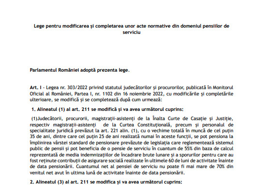 DOCUMENT A fost publicat noul proiect privind pensiile magistraților