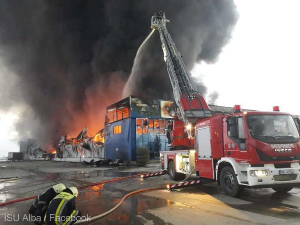 Alba: 213 detectoare de fum şi temperatură amplasate în fabrica mistuită de flăcări; incendiul a izbucnit deasupra tavanului