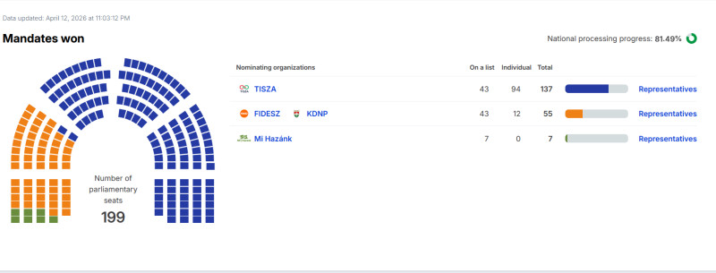 Dintre acestea, Tisza are 94 de mandate uninominale și 43 pe listele de partid, în timp ce Fidesz și KDNP obțin 43 de mandate pe listele de partid și 12 uninominale.