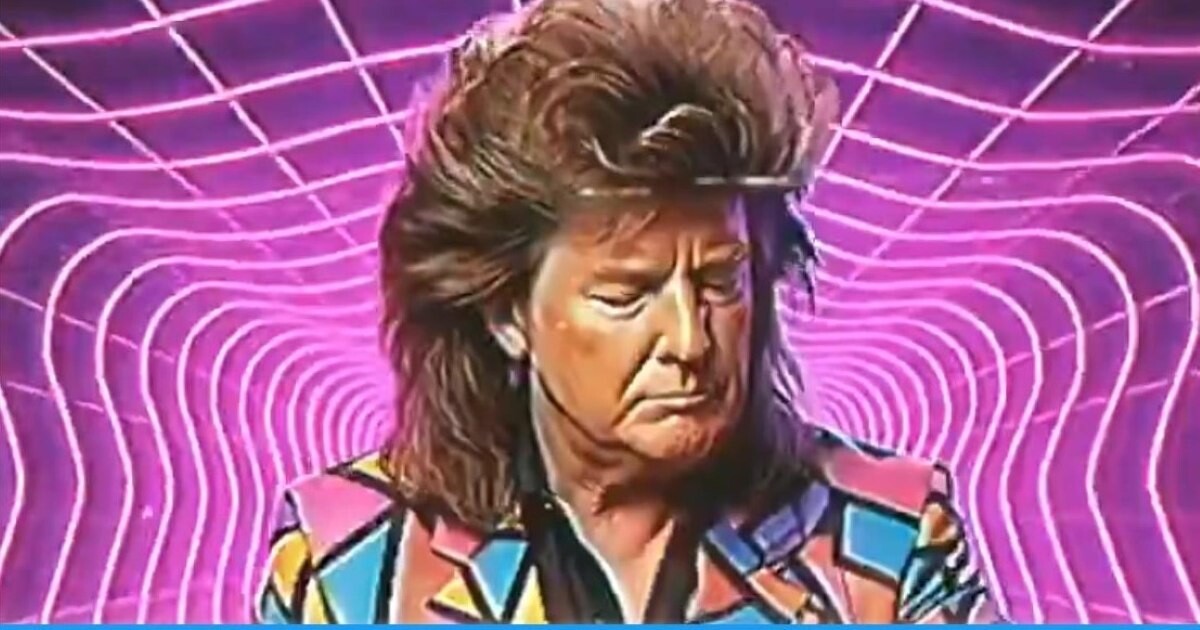 În clip, Trump este „recreat” digital într-o versiune desprinsă din anii ’80: freză voluminoasă, look de star synth-pop și un sintetizator în față, pe care îl „apasă” dramatic în timp ce cântă.