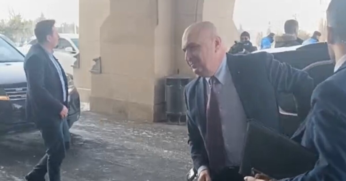 Bolojan le-a zâmbit celor care strigau împotiva sa atunci când a coborât din mașină și și-a continuat drumul către sala de sedințe unde are loc întâlnirea.