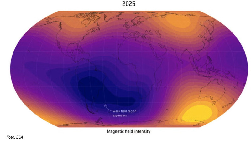 Acum, după 11 ani de măsurători ale câmpului magnetic de la această constelație de sateliți, cercetătorii au descoperit un punct slab al câmpului magnetic al Pământului deasupra Atlanticului de Sud, cunoscut sub numele de Anomalia Atlanticului de Sud.