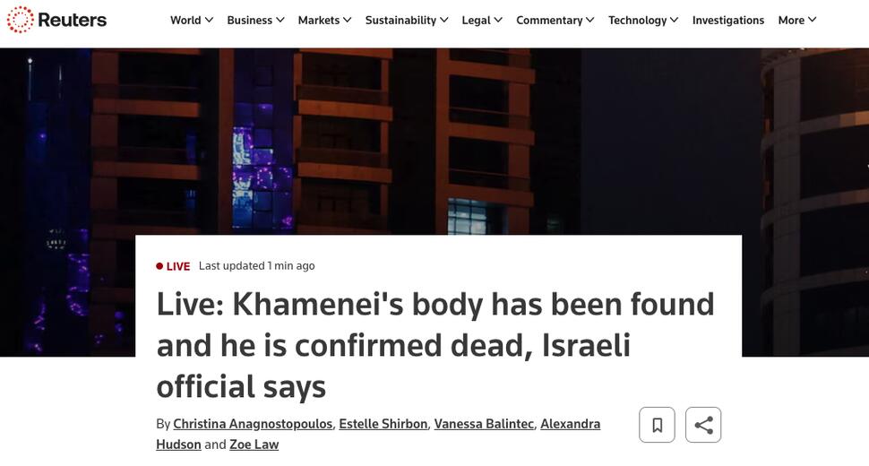 Postul public KAN a relatat că „înalți oficiali israelieni au fost informați despre eliminarea lui Khamenei. Cadavrul său a fost recuperat din dărâmăturile complexului său”. Potrivit Canalului 12, „o fotografie cu cadavrul a fost arătată lui Netanyahu și Trump”.