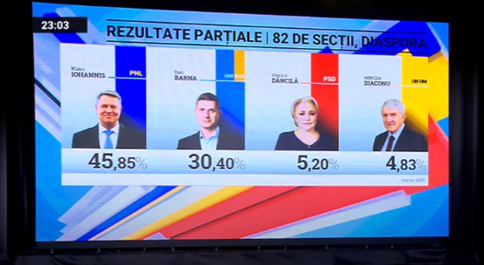 BREAKING Rezultate parțiale din 81 de secții din Diaspora: Iohannis-45,85%, Dăncilă-5,20%, Barna-30,40%