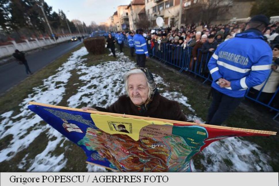 Totodată demonstranții poartă pancarte cu texte precum "Jos acoperiții din Justiție", "Constituția a-ncălcat, lumea a intrigat! România a dezbinat! Iohannis trădător", "Pierdut președinte".