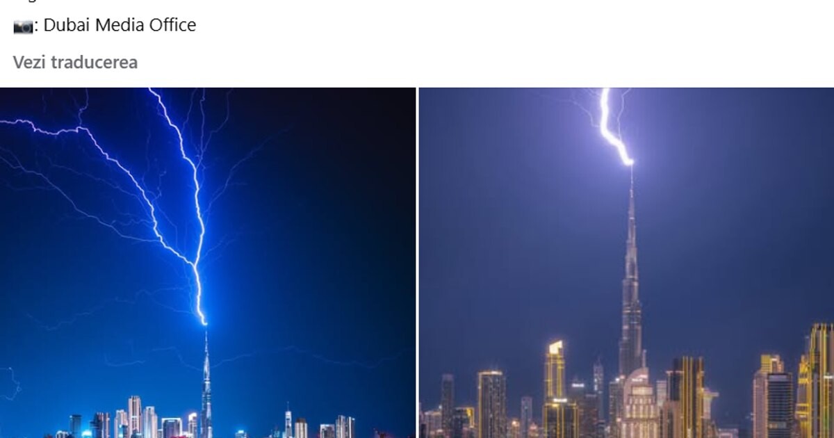 Fotografiile și filmările postate online arată momentul în care fulgerul lovește vârful turnului de 828 de metri, fiind preluat de sistemul de protecție al clădirii. Fenomenul a avut loc în contextul unui front atmosferic intens, care a adus furtuni, descărcări electrice și risc de inundații în mai multe zone ale Emiratelor Arabe Unite.