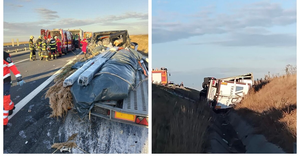 Accidentul, în care au fost implicate un autotren și un microbuz, a avut loc pe sensul de mers Arad – Nădlac – Km 570, pe A1.
