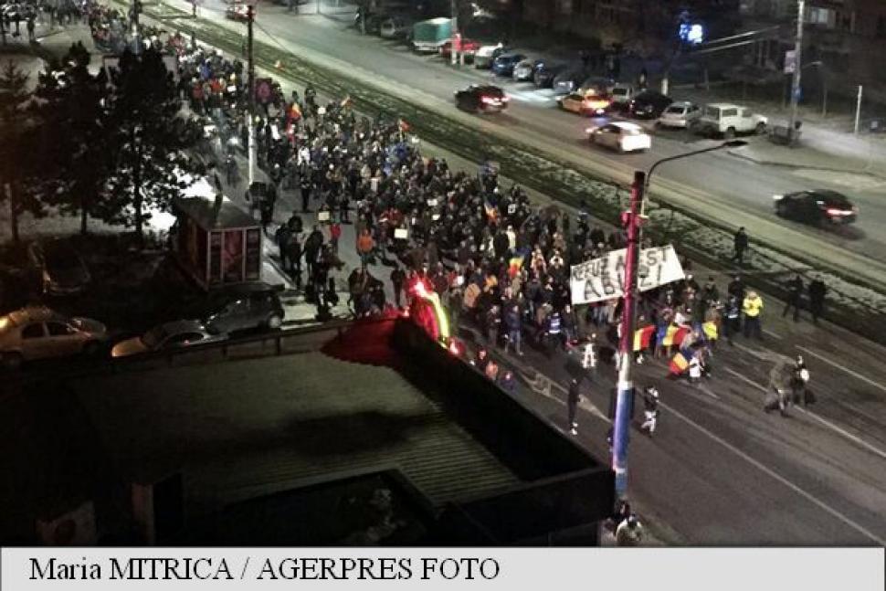 Circa 2.000 de persoane protestau sâmbătă seară, în jurul orei 19,30, în centrul Craiovei, în Piața "Mihai Viteazul" - Piața Prefecturii, pentru a cincea seară consecutiv, iar în centrul municipiului Calafat se aflau circa 30 de persoane.