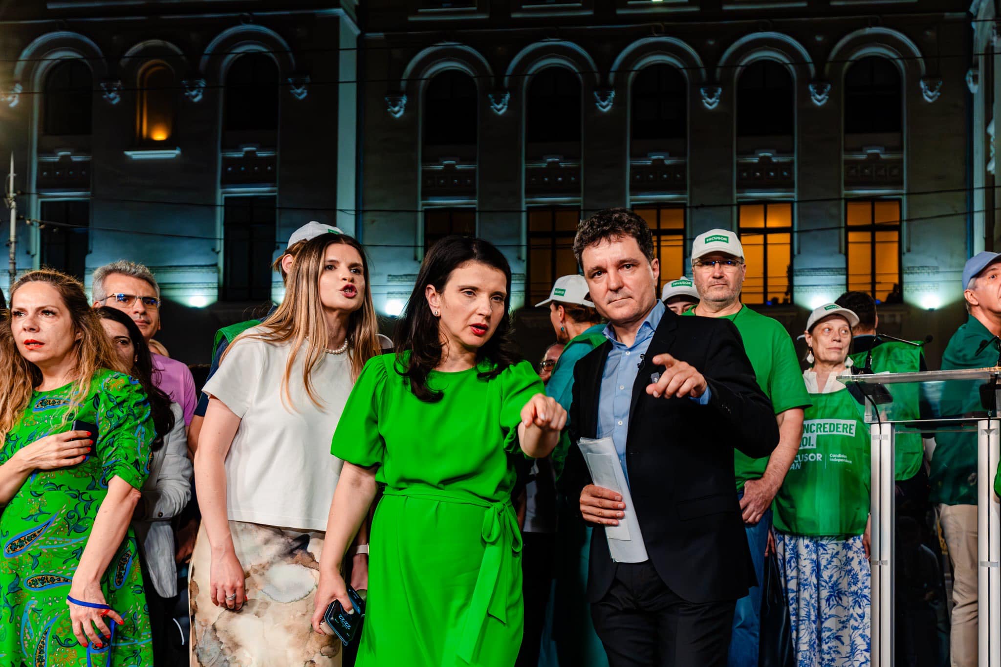 Într-o postare tot pe Facebook , jurnalista Carmen Dumitrescu a semnalat că a identificat-o pe Gabriela Sîia Cenușă în anturajul lui Nicușor Dan, pe scena unde ținea discursul, după alegeri.