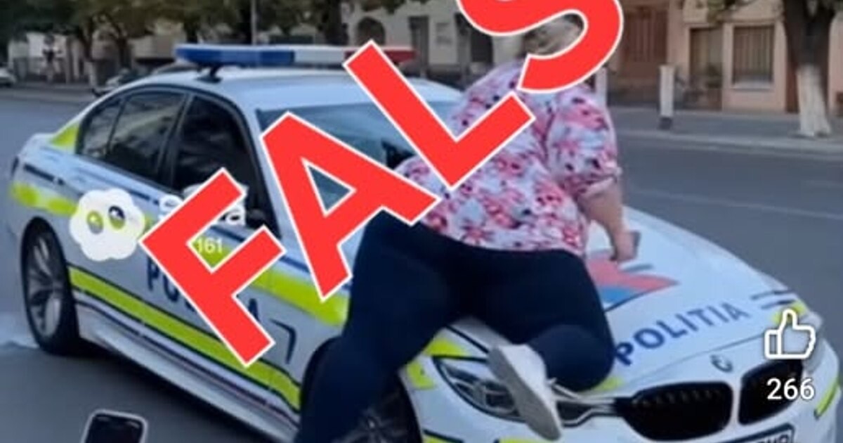 Ministerul Afacerilor Interne a demontat un clip viral în care o femeie ar fi distrus un BMW al Poliției, avertizând că este un fake-news. Materialul video a fost creat cu ajutorul unui program de inteligență artificială, iar acțiunea nu s-a întâmplat în realitate.