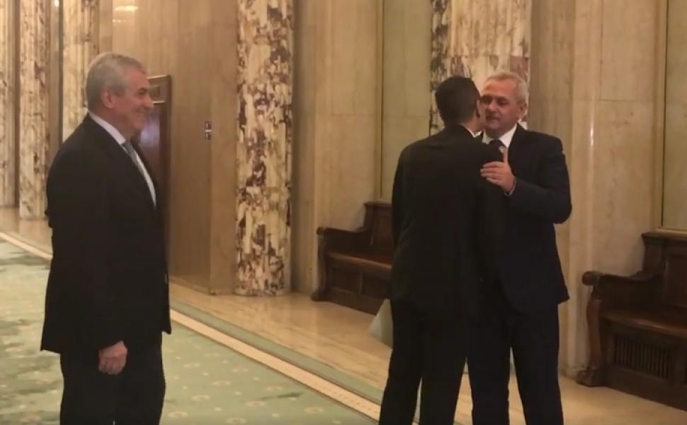Pe 4 ianuarie, cei doi lideri ai coaliţiei aflate la guvernare, Liviu Dragnea şi Călin Popescu Tăriceanu, l-au condus pe prim-ministrul Sorin Grindeanu până în apropierea sălii unde a avut loc prima şedinţă de Guvern, iar la despărţire şeful Executivului le-a strâns mâinile şi l-a sărutat pe obraji pe preşedintele PSD, care i-a urat „Succes!”. Dacă Dragnea nu se ferea discret, Grindeanu l-ar fi sărutat pe gură!