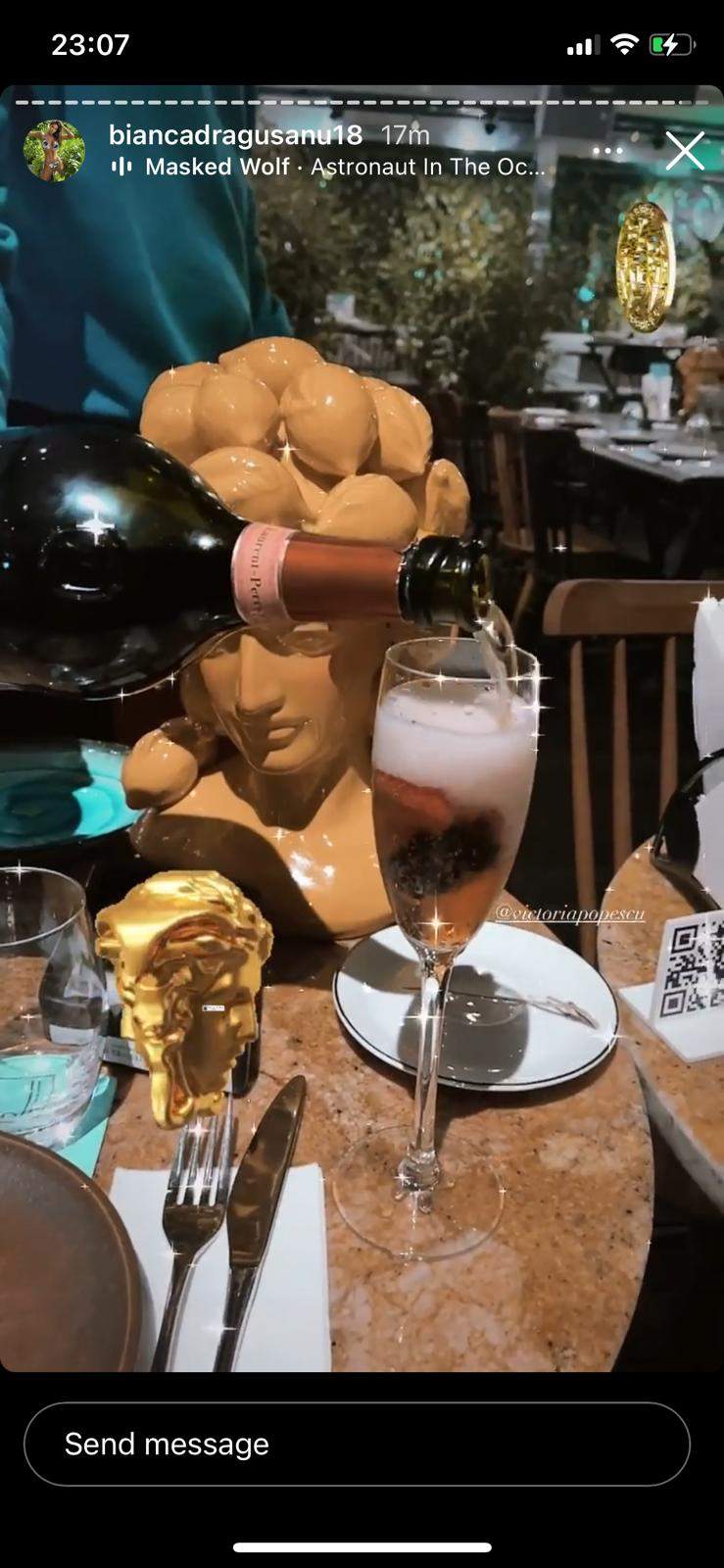 Și ca să vedeți că încă se ascund, Bianca Drăgușanu și Gabi Bădălău au ales să meargă într-un club de fițe din zona Herăstrău, după cum putem vedea pe Instagram, iar cei doi au ales să bea șampanie, probabil pentru a încununa împăcarea după ”o despărțire de lungă durată”.