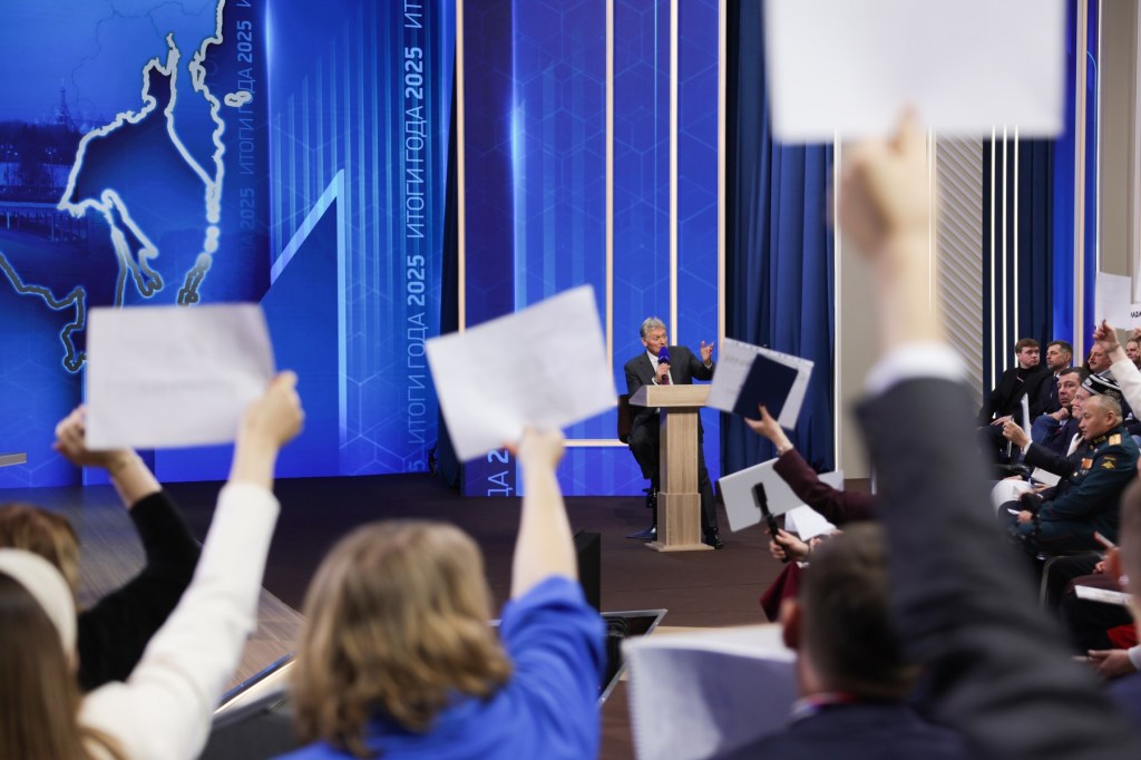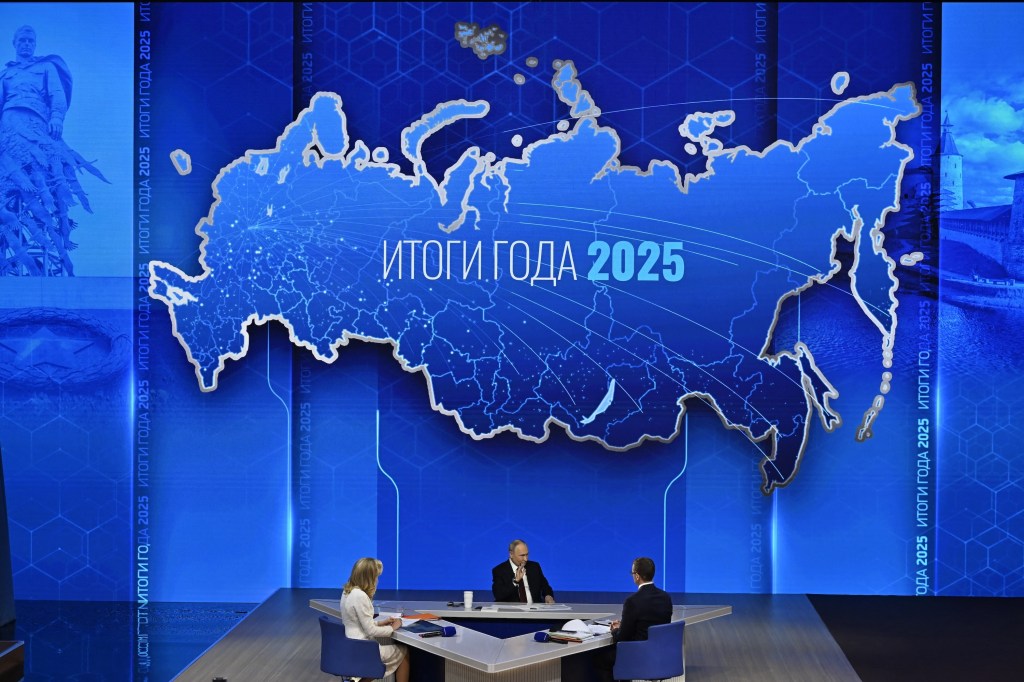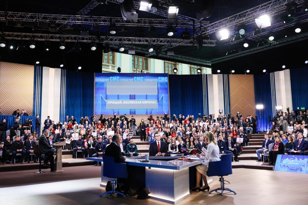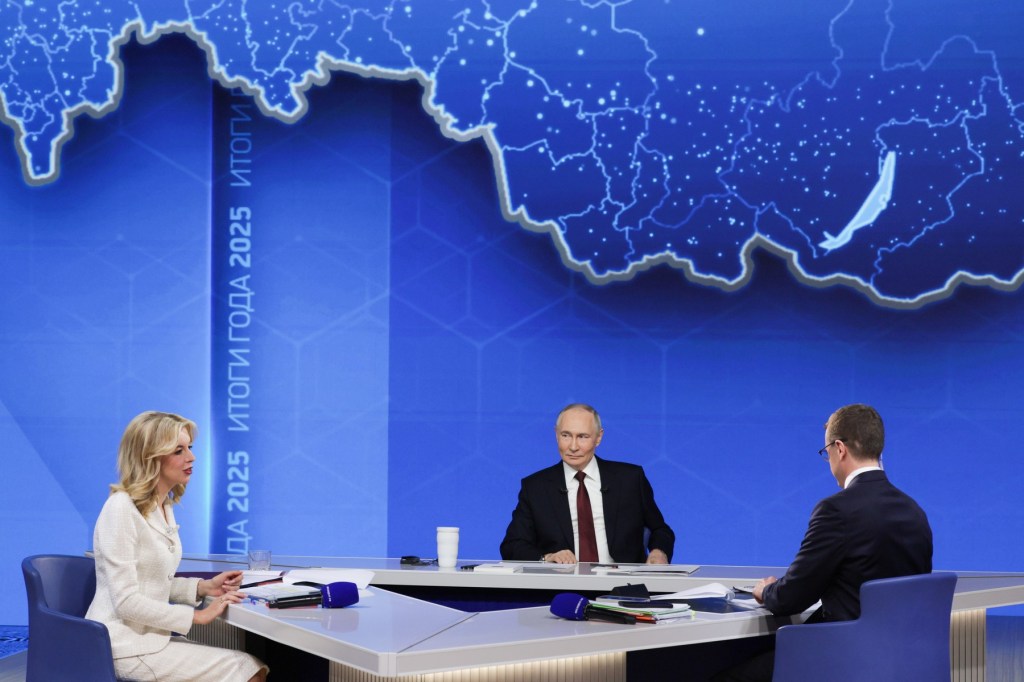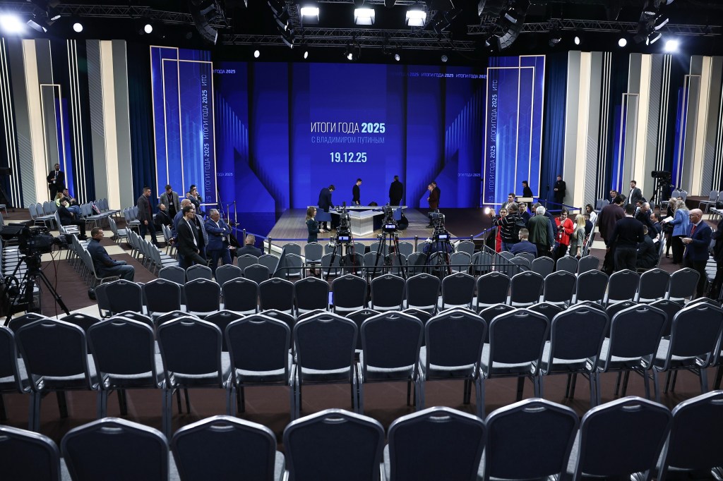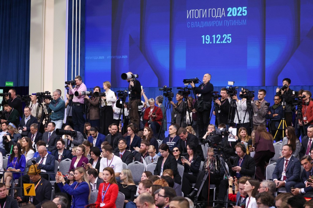 MOSCOW, RUSSIA – DECEMBER 19: Russia’s President Vladimir Putin (C) attends annual special televised question-and-answer session and year-end news conference scheduled to take place at the Gostiny Dvor in Moscow, Russia, on December 19, 2025. Sefa Karacan / Anadolu/ABACAPRESS.COM,Image: 1060341583, License: Rights-managed, Restrictions: , Model Release: no, Credit line: AA/ABACA / Abaca Press / Profimedia 12:51