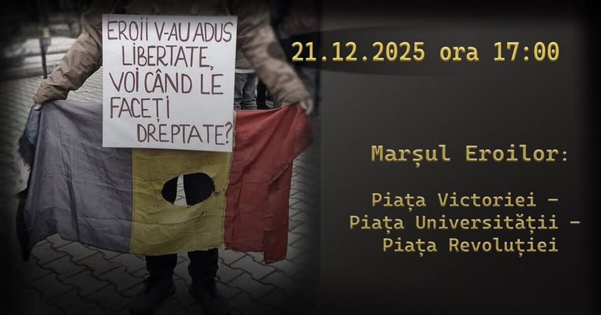 „În decembrie 1989, 1141 de eroi-martiri ne-au dat LIBERTATE. După 36 de ani, FII VOCEA LOR şi cere pentru ei DREPTATE! Marş memorial 21 decembrie 1989. Sângele celor ucişi în decembrie 1989 nu poate fi spălat de niciun complet aranjat. Jertfa celor care ne-au dat dreptul să vorbim liber nu poate fi prescrisă. Suferinţa familiilor celor omorâţi în Timişoara, Bucureşti şi peste tot în ţară este adâncită de impunitatea criminalilor. An de an, politicienii depun coroane şi ţin discursuri fără nicio finalitate. De 36 de ani, eroii-martiri din decembrie 1989 sunt ucişi prin nepăsare şi corupţie”, se arată pe pagina de Facebook a evenimentului .