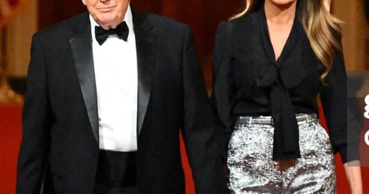 Conform fotografiilor publicate de National Enquirer, Prima Doamnă a optat pentru o bluză neagră și pantaloni strălucitori Dolce & Gabbana, o alegere care a contrastat puternic cu ținuta clasică, de tip smoking, a președintelui, în vârstă de 79 de ani. În același timp, majoritatea invitaților au respectat codul vestimentar black tie, inclusiv Usha Vance, soția vicepreședintelui JD Vance, care a purtat o rochie lungă neagră.
