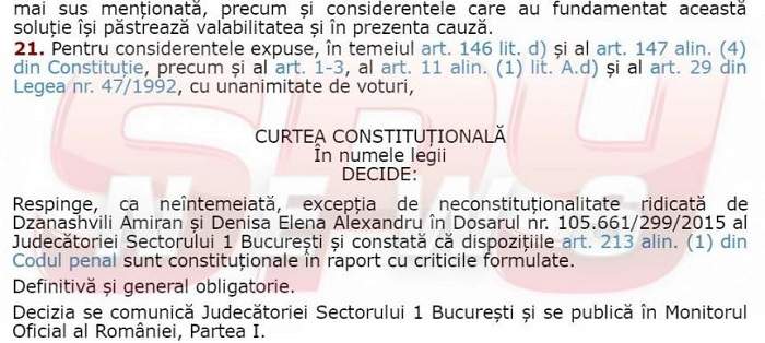 În încercarea de a fenta pușcăria, Dzanashvili a sesizat Curtea Constituţională, susţinând că nu poate fi acuzat de proxenetism, atâta timp cât el nu a făcut decât să găzduiască în cazinoul său diferite persoane. „Excepția a fost ridicată de Dzanashvili Amiran (foto sus) și Denisa Elena Alexandru cu ocazia soluționării unei cauze penale având ca obiect tragerea la răspundere penală pentru săvârșirea unor infracțiuni de proxenetism.În motivarea excepției de neconstituționalitate autorii acesteia susțin, în esență, că dispozițiile art. 213 alin. (1) din Codul penal încalcă principiul legalității incriminării și a pedepsei, întrucât sintagma „înlesnirea practicării prostituției“ este lipsită de claritate și previzibilitate. Consideră că destinatarul normei de incriminare nu-și poate da seama dacă acțiunea sa intră sau nu sub incidența acesteia, sub aspectul săvârșirii infracțiunii de proxenetism în modalitatea normativă a înlesnirii practicării prostituției, deoarece respectiva acțiune de înlesnire nu este caracterizată de elemente obiective clare”, se menţionează în hotărârea dată de CCR, hotărâre prin care, de altfel, s-a respins cererea milionarului. (facsimil jos)