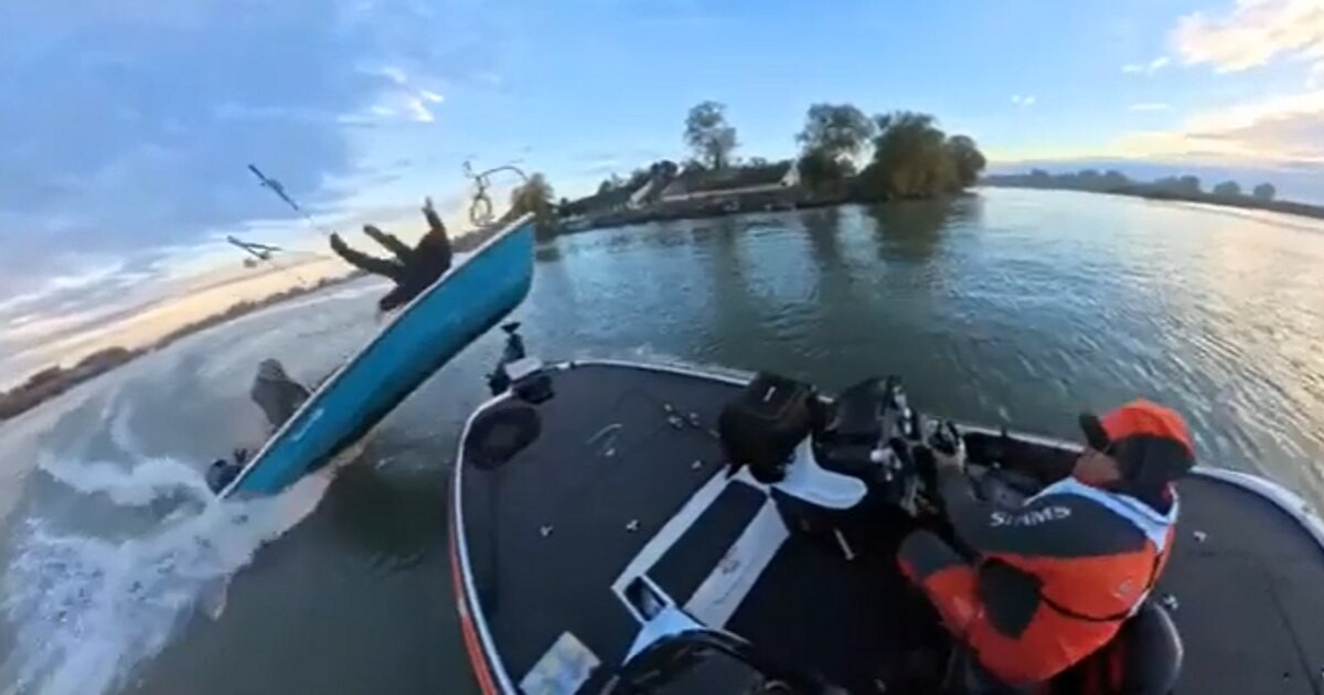 În urma imapactului violent, unul dintre bărbați este aruncat în aer și se lovește de barcă.