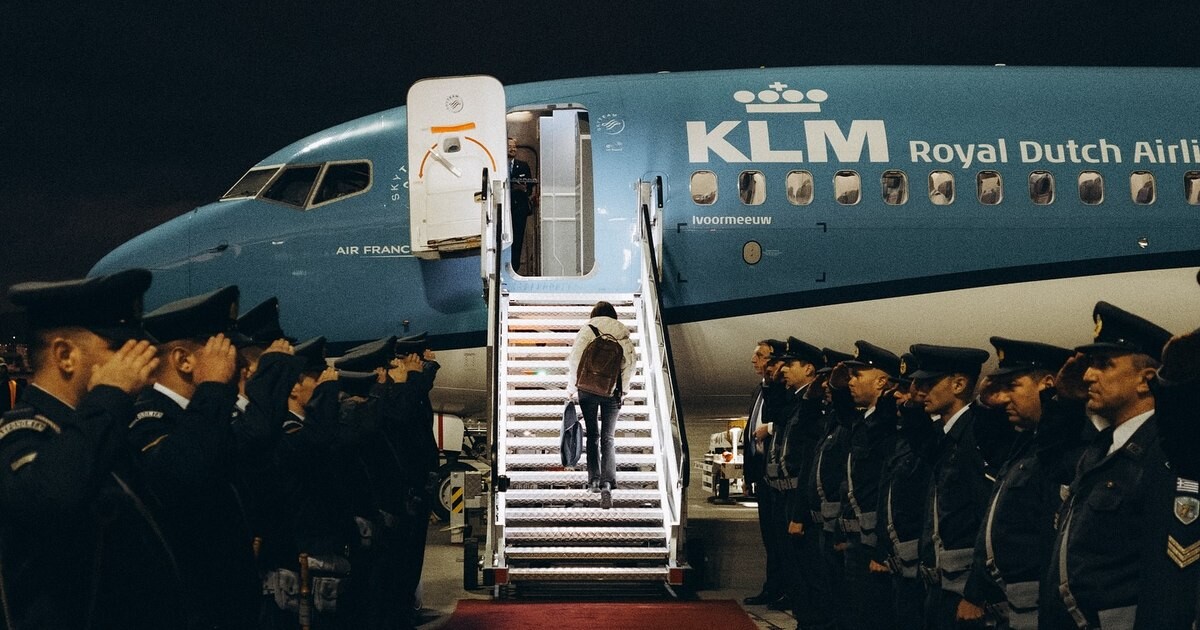 Într-o fotografie rară, surprinsă pe aeroportul din Grecia, președinta Maia Sandu primește onoruri militare chiar în timp ce urcă scara avionului, îmbrăcată simplu, ca un pasager obișnuit, cu rucsac în spate, impresionând foarte mulți oameni.