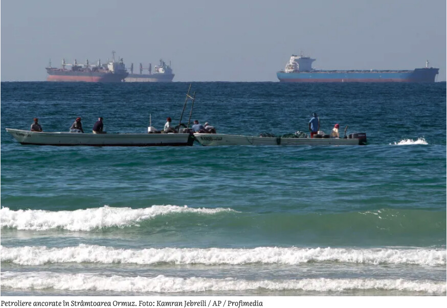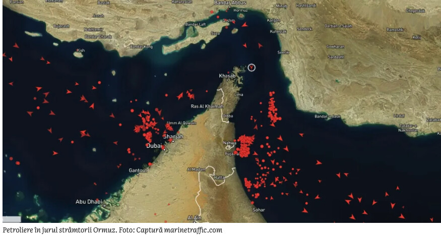 Petroliere în jurul strâmtorii Ormuz. Foto: Captură marinetraffic.com Noile evoluții vine după ce Centrul de securitate maritimă din Oman a transmis duminică că petrolierul Skylight, sub pavilionul Palau, a fost atacat la aproximativ cinci mile marine de Musandam, Oman. Patru persoane au fost rănite, iar întregul echipaj, format din 20 de persoane, a fost evacuat.