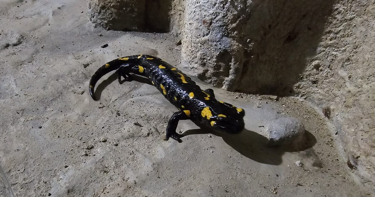 O salamandră de foc care și-a petrecut iarna în galeriile unui baraj din România a ieşit din hibernare