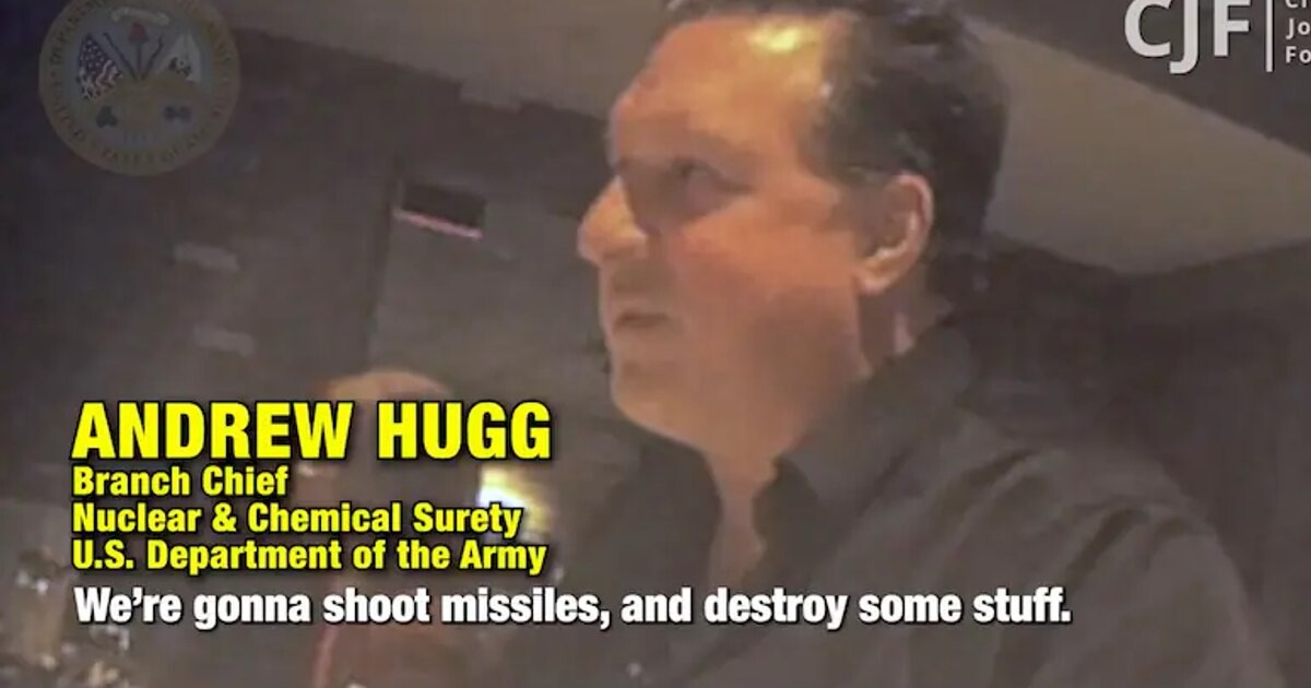 Potrivit lui O’Keefe, Hugg este „șeful diviziei pentru siguranță nucleară și chimică” din cadrul armatei SUA. Filmarea, ajunsă virală, îl arată pe acesta discutând cu un jurnalist sub acoperire și făcând o serie de comentarii controversate despre capacitățile și acțiunile militare ale SUA. El susține că atribuțiile sale includ gestionarea armelor chimice, a armelor nucleare și a sistemelor menite să le securizeze.