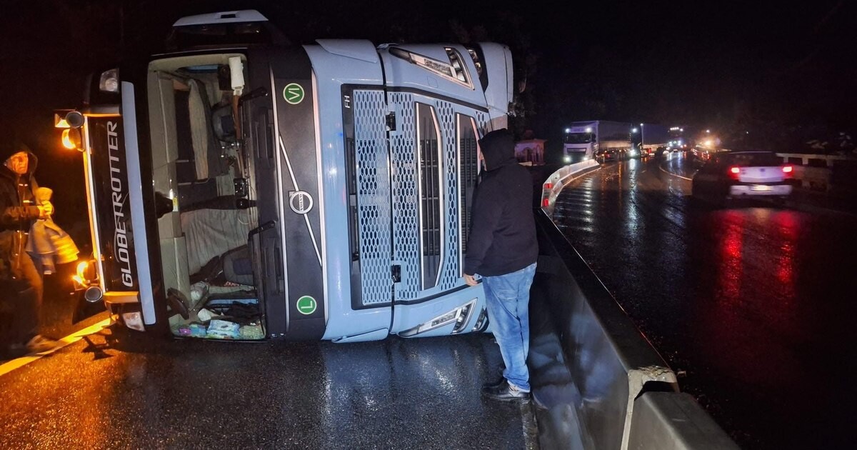 Duminică dimineața, traficul rutier se desfășoară alternativ, dirijat de polițiști, pe DN 56A Drobeta-Turnu Severin – Maglavit, în afara loc. Hinova, județul Mehedinți, după ce, în cursul nopții, un ansamblu rutier s-a răsturnat pe partea carosabilă. Au rezultat doar pagube materiale, anunță Centrul Infotrafic. Nu există pericol de explozie, iar camionul transportă alimente, au explicat autoritățile.