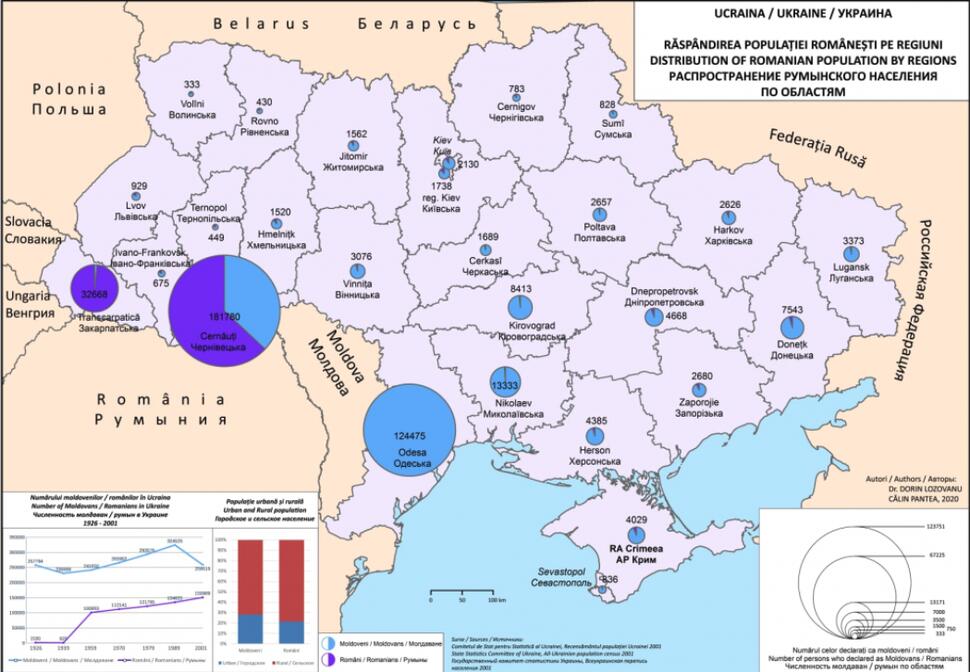 Majoritatea covârșitoare a localităților etichetate drept „românești” se află în regiunile Transcarpatică și Cernăuți (în special Nordul Bucovinei și ținutul Herța), în timp ce cele clasificate drept „moldovenești” sunt concentrate în ținutul Hotinului, regiunea Odesa și restul Ucrainei. Din punct de vedere lingvistic și cultural, vorbim însă despre aceeași comunitate, care folosește limba română ca element identitar comun.