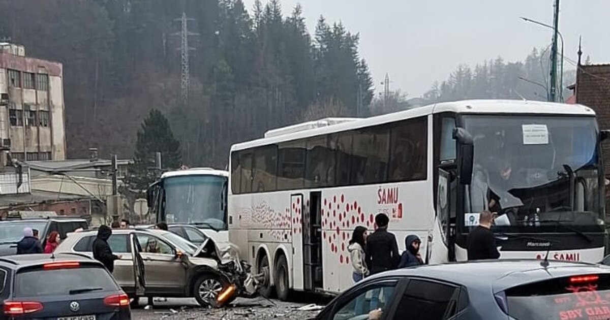 Conform sursei citate, autocarul s-a tamponat cu un autoturism în care erau patru ocupanţi.