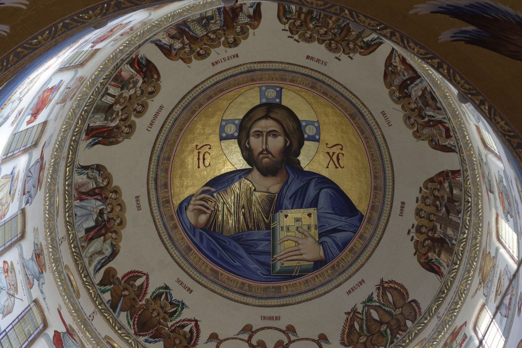 În cupola principală, o lucrare de 150 de metri cu icoana lui Isus Hristos Pantocrator