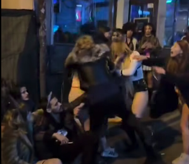 Incidentul a fost surprins în imagini, care arată că tinerele se împing, se trag de păr şi se lovesc cu pumnii şi picioarele.