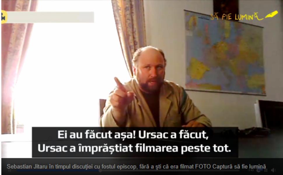 În imagini se vede cum episcopul Bârlădeanu stă în picioare, iar în faţa lui, cu faţa spre el şi cu spatele la cameră, un alt bărbat, căruia episcopul, cu timbru-i inconfundabil, îi spune ”Eşti nebun, Ursac!”.