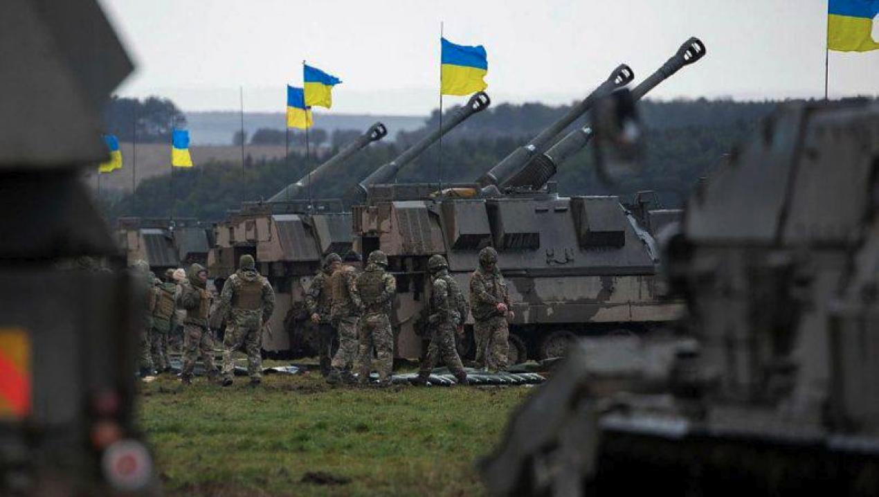 Textul apare sub o înregistrare video de puțin peste un minut care arată forțele ucrainene antrenându-se, cel mai probabil, la răsăritul soarelui.