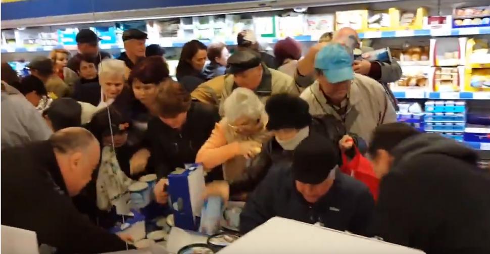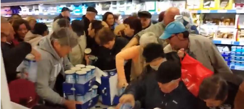 Clipul a început să circule de astăzi dimineață pe Whatsapp și a fost trimis inclusiv la români din afara țării. Imaginile sunt din 2018, atunci când a fost o ofertă la brânză într-un supermarket, iar oamenii s-au încăierat în zona caselor de marcat.