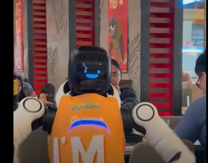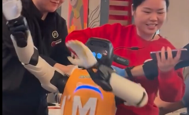 Robotul a fost surprins video de un client al lanțului chinezesc de restaurate Haidilao apropiindu-se de o masă înainte de a lovi de ea, apoi răsturnând ustensile și mâncare în fața clienților. Se poate vedea cum angajații încearcă cu greu să-l țină sub control în timp ce acesta dansează haotic.