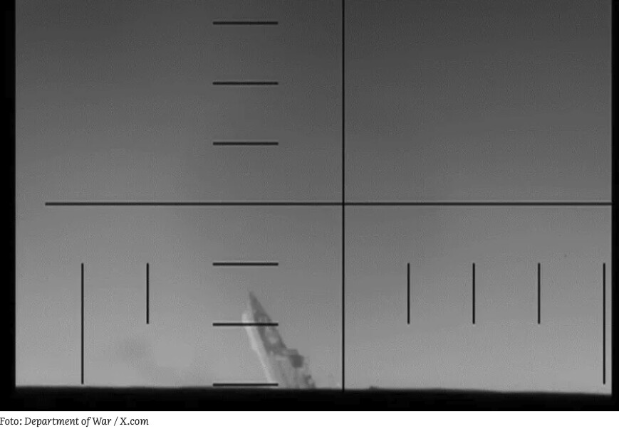 „Ieri, în Oceanul Indian (…) un submarin american a scufundat o navă de război iraniană care se credea în siguranță în apele internaționale. În schimb, a fost scufundată de o torpilă”, a declarat Pete Hegseth în cadrul unei conferințe de presă la Pentagon, subliniind că această navă a fost prima scufundată de o torpilă americană după al Doilea Război Mondial.