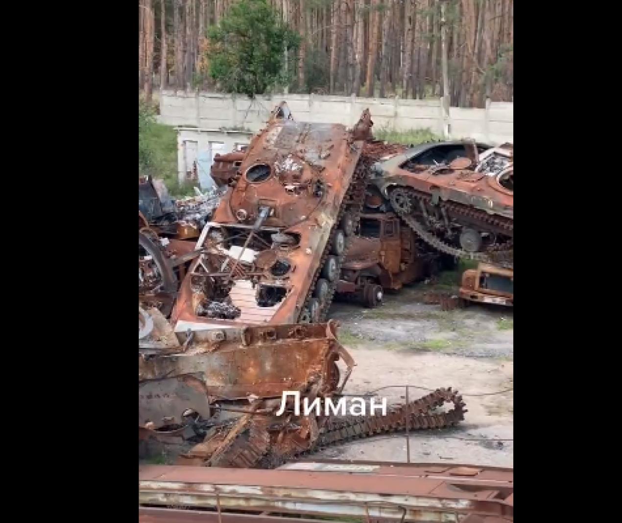 Primele imagini cu „cimitirul” de blindate rusești din Liman...