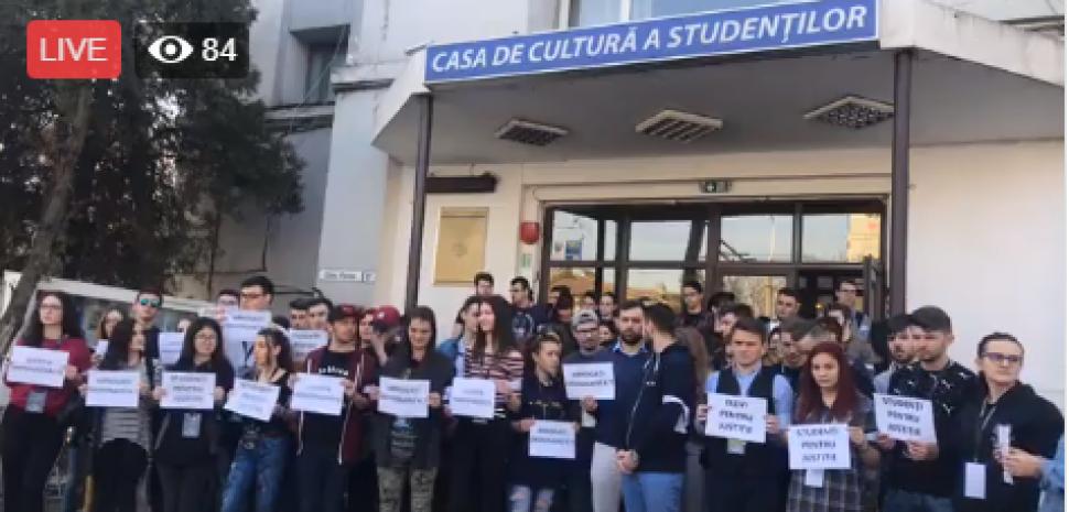 Casa de Cultură a Studenților din București: Protest mut al elevilor, studenților și tinerilor pentru a-i susține pe magistrați împotriva OUG 7