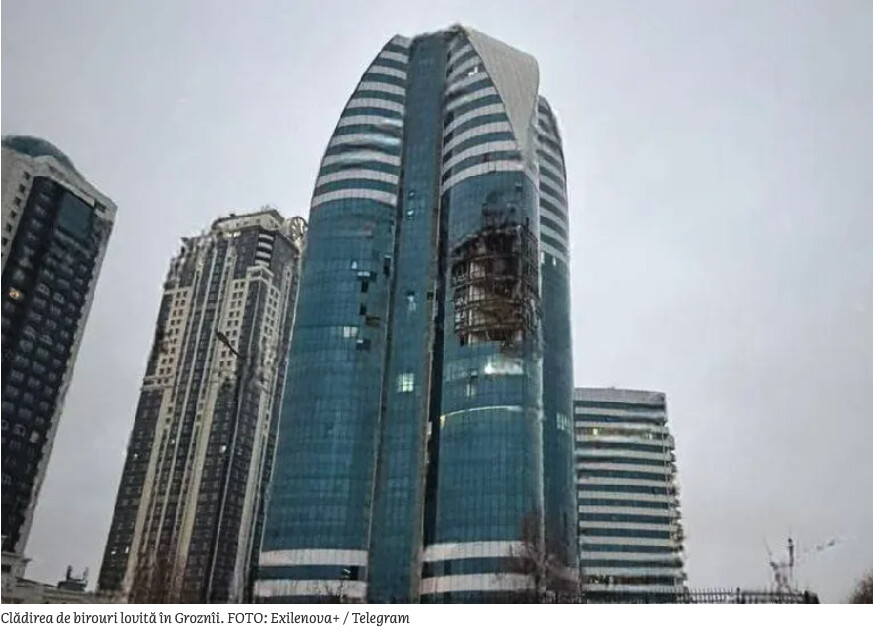 VIDEO Priviți, ucrainenii au lovit un zgârie nori, mândria Ceceniei, aproape de locuința lui Kadîrov din Groznîi !