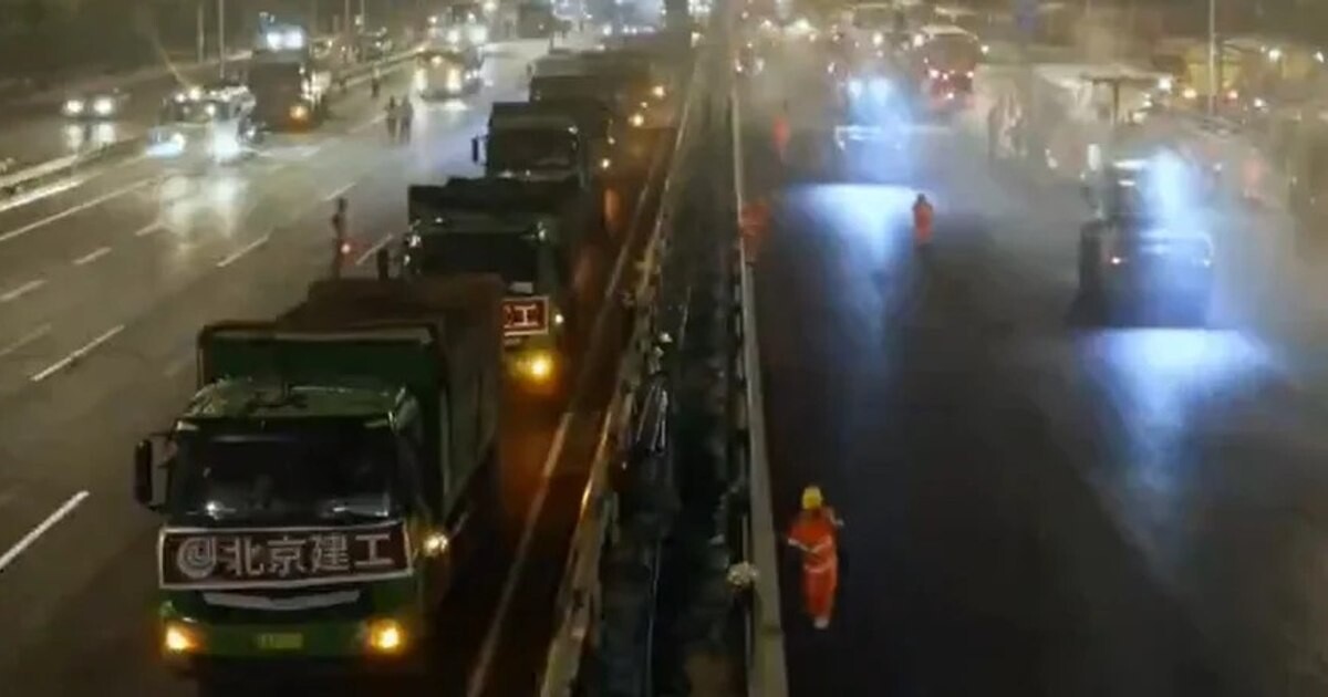 În Beijing, 8.000 de tone de asfalt au fost turnate într-o singură noapte, pe un tronson de 2,4 kilometri din centura a patra a orașului. O operațiune care, în multe alte părți ale lumii, ar dura săptămâni — dacă nu luni — aici s-a încheiat în aproximativ șase ore.
