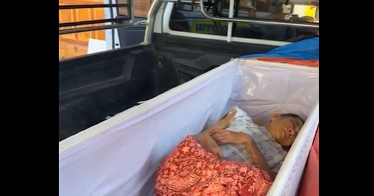 Femeia s-a trezit însă în propriul sicriu când camioneta a ajuns la templu, șocând rudele când a început să bată în lemn.