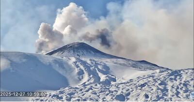 Muntele Etna prezintă noi semne de activitate vulcanică. Norul de cenușă și praf a fost purtat de vânt