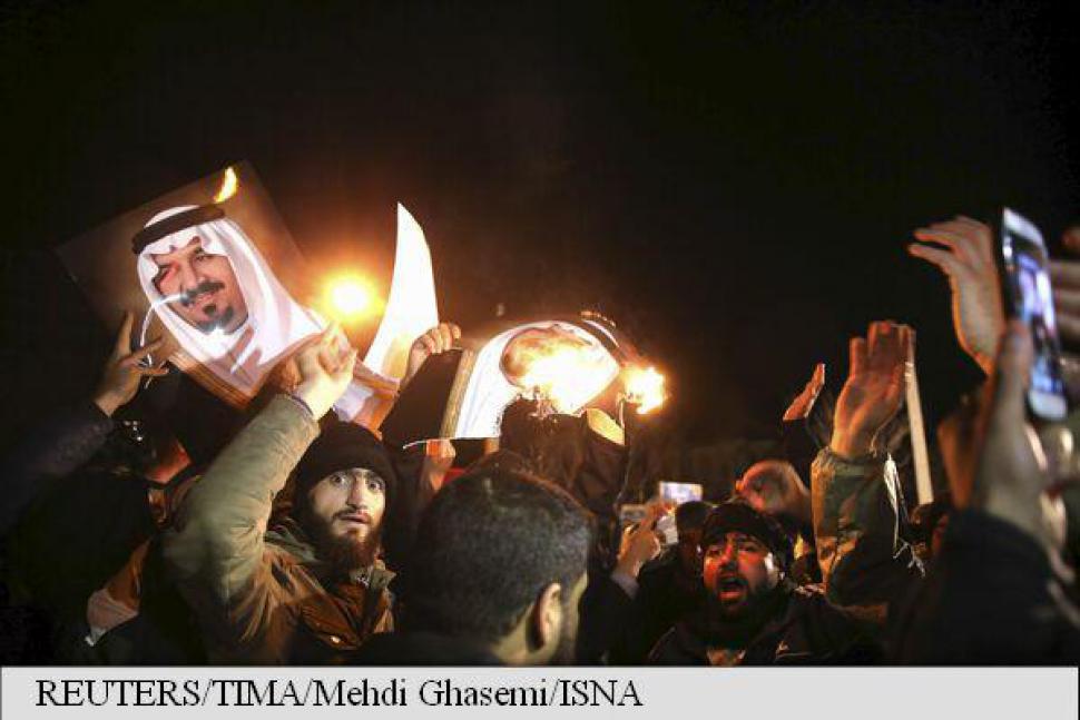 Protestatarii au strigat 'Moarte lui al-Saud', cu referire la numele familiei regale de la Riad, și au ars drapele americane și israeliene. Șeful poliției din Teheran, prezent la fața locului, le-a cerut manifestanților să se disperseze.
