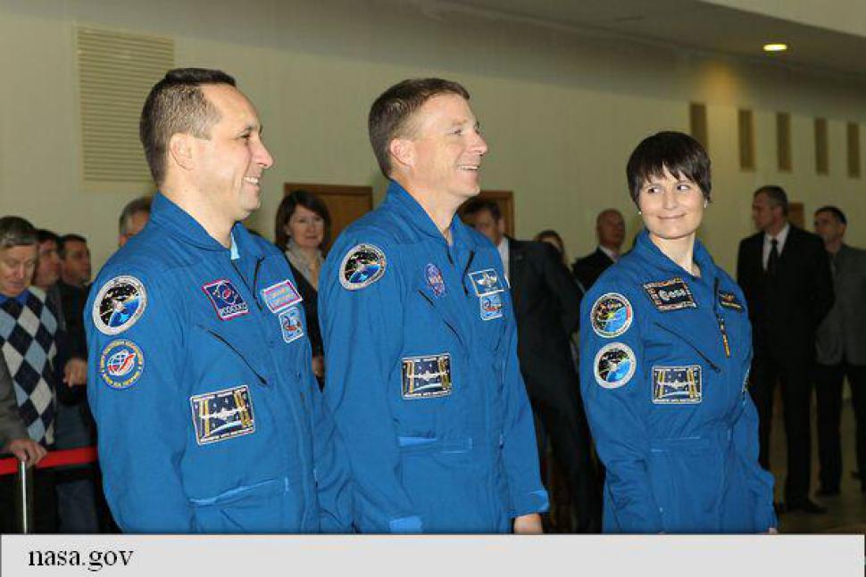 Cei trei astronauți — rusul Anton Ciaplerov, americanul Terry Virts și italianca Samantha Cristoforetti — urmau să revină pe Terra la 12 mai, dar au fost obligați să își prelungească sejurul ca urmare a accidentului suferit de naveta cargo Progress, care s-a dezintegrat în atmosferă la 8 mai, după ce operatorii ruși au pierdut-o de sub control.